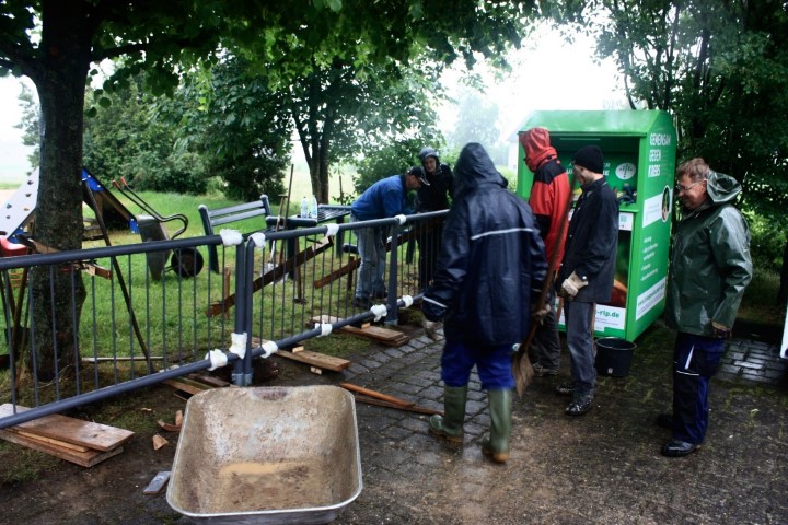 Abgeschlossen (09.07.2016): die Abtrennung (Zaunanlage) zwischen Spielplatz und Buswendeplatz ist zur Sicherheit der spielenden Kinder fertiggestellt. Trotz des starken Regens am 25. Juni haben wir gemeinsam gute Arbeit geleistet. Danke im Namen der Kinder an alle Helfer. Danke auch an die RWE für ihre großzügige Spende und an die Kreisverwaltung Ahrweiler für die Unterstützung im Rahmen der Förderung des Ländlichen Raums.